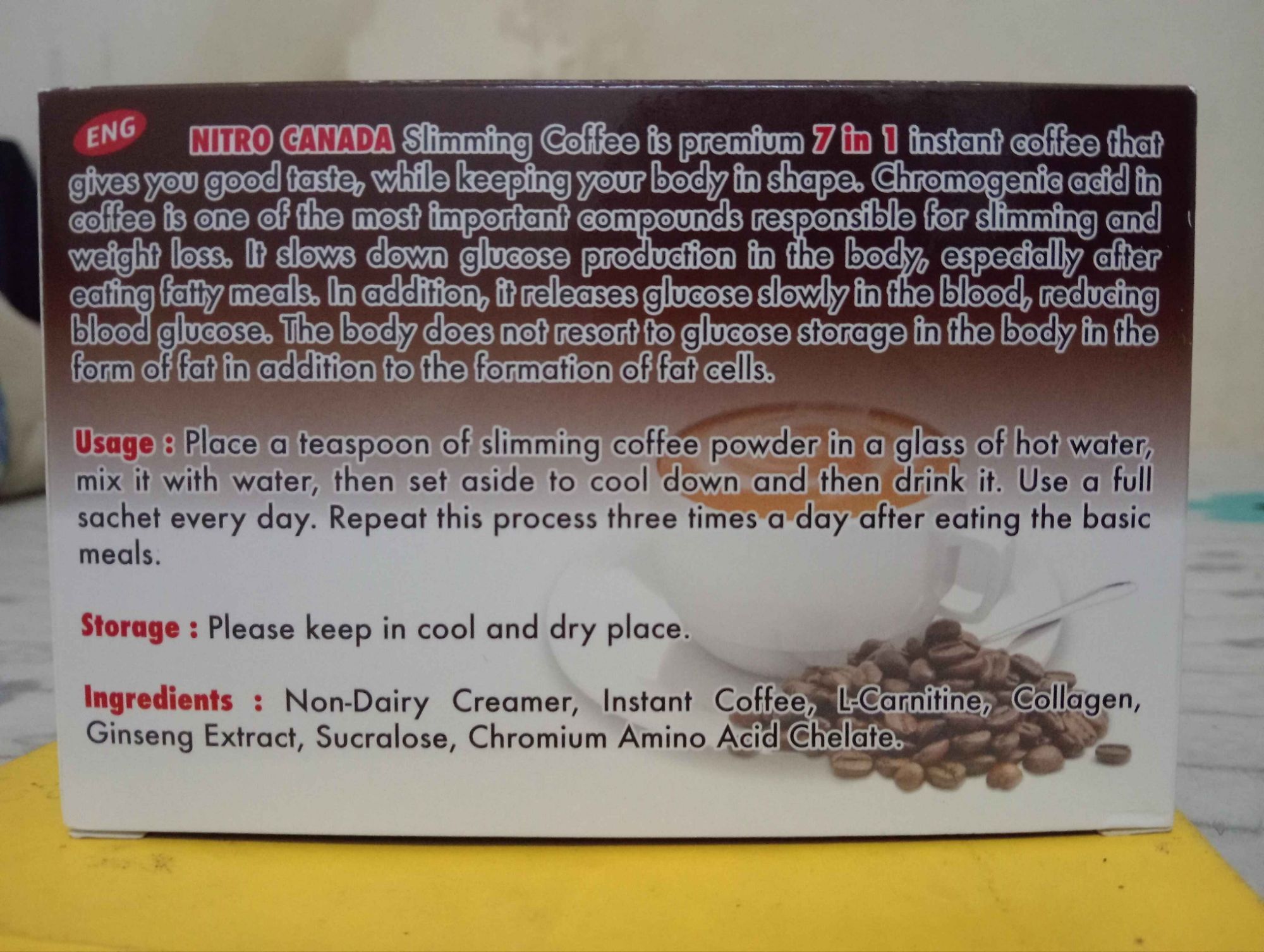 NITRO CANADA Slimming Coffee is premium 7 in 1 instant coffee that gives you good taste, while keeping your body in shape. Chromogenic acid in Coffee is one of the most important compounds responsible for slimming and weight loss. It slows down glucose production in the body, especially after eating fatty meals. In addition, it releases glucose slowly in the blood, reducing blood glucose. The body does not resort to glucose storage in the body in the form of fat in addition to the formation of fat cells.